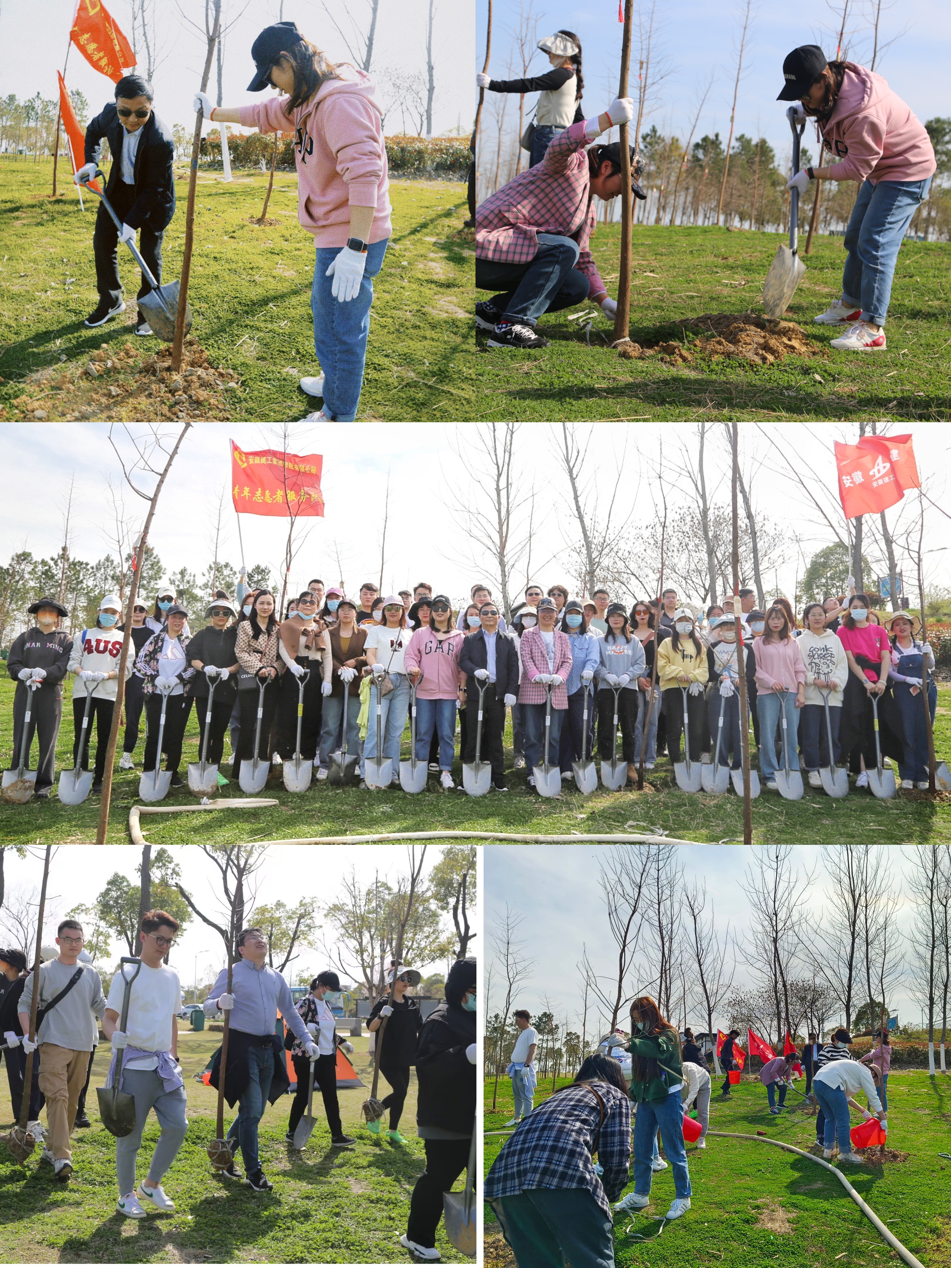 在植樹活動現(xiàn)場,志愿者們扶苗穩(wěn)固,揮鍬培土、提桶澆灌,整個過程分工明確、配合默契、銜接有序。經(jīng)過大家的辛勤努力,新栽好的樹苗迎風而立,生機盎然,現(xiàn)場呈現(xiàn)出一派熱鬧的勞動景象。