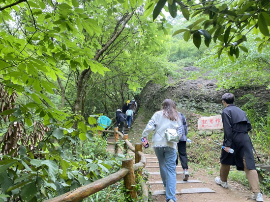 綠色健康毅行,再走革命路。為了切身體會革命先烈在大山之間的艱苦生活,團員青年進行了“再走革命路”健康毅行活動。一路上大家彼此幫助、相互鼓勵,沿著蜿蜒的山路不斷向上。歷經2個多小時的跋涉,全體團員青年成功抵達山頂。立于山頂,長風撲面,放眼四望,巍巍群山盡收眼底,一時間,感嘆祖國山河壯麗的自豪之情油然而生,大家情不自禁地吟出會當凌絕頂,一覽眾山小”“江山如此多嬌等詩句,用最純情的方式,向偉大祖國告白