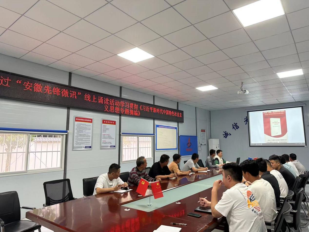 為深入學(xué)習(xí)貫徹習(xí)近平新時代中國特色社會主義思想主題教育,深刻領(lǐng)會新時代中國特色社會主義思想的精神實(shí)質(zhì)和豐富內(nèi)涵。宿徐現(xiàn)代產(chǎn)業(yè)園片區(qū)市政項(xiàng)目部組織職工使用“安徽先鋒微訊”線上誦讀《習(xí)近平新時代中國特色社會主義思想專題摘編》。