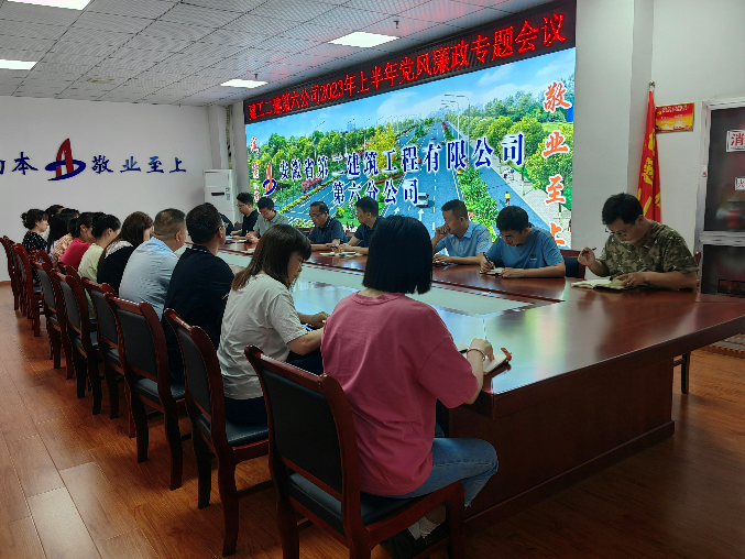 6月26日上午,第六公司召開(kāi)上半年黨風(fēng)廉政建設(shè)工作會(huì)議,總結(jié)回顧上半年黨風(fēng)廉政建設(shè)工作,部署下半年黨風(fēng)廉政建設(shè)重點(diǎn)工作任務(wù)。