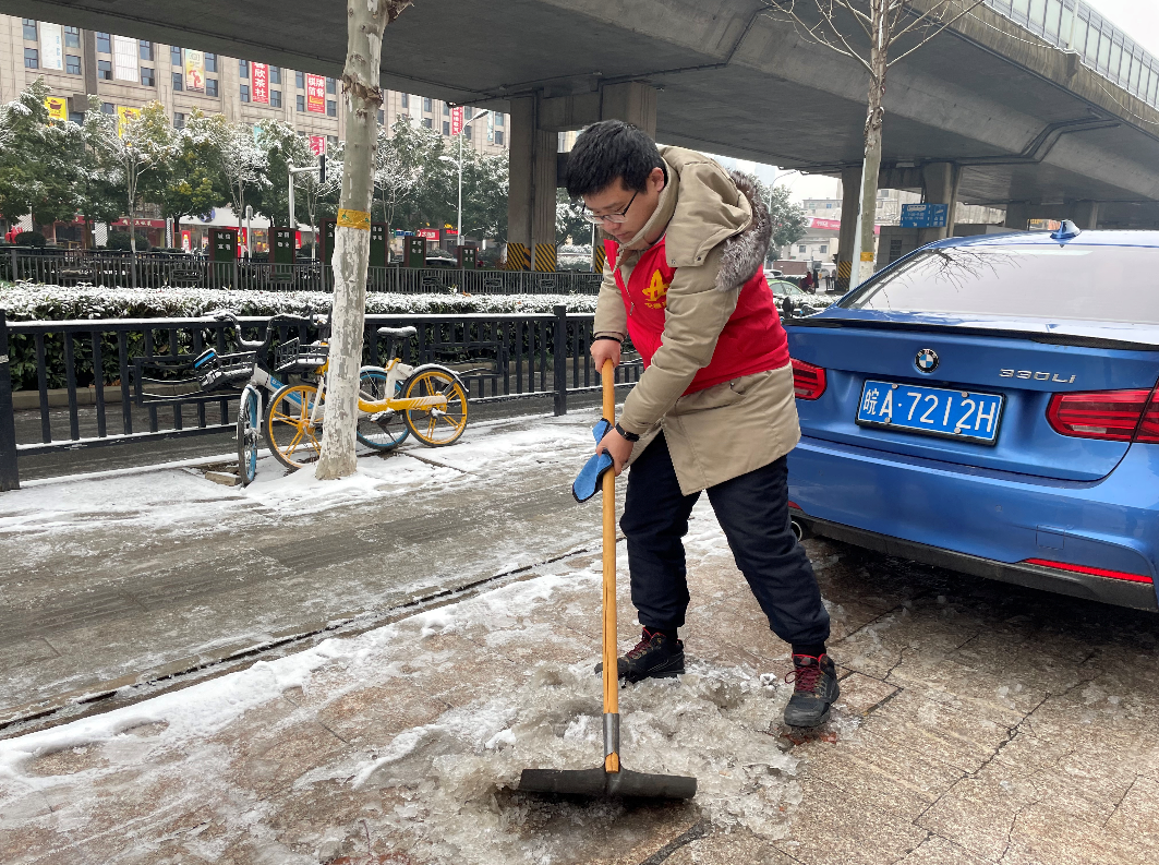 合肥迎來低溫雨雪冰凍天氣,城區(qū)多條道路“刷白”,給群眾出行帶來不便。2月5日,建工二建第四公司青年志愿者,以雪為令、迅速行動,開展掃雪除冰“大作戰(zhàn)”,用一抹“志愿紅”,溫暖整個寒冬。