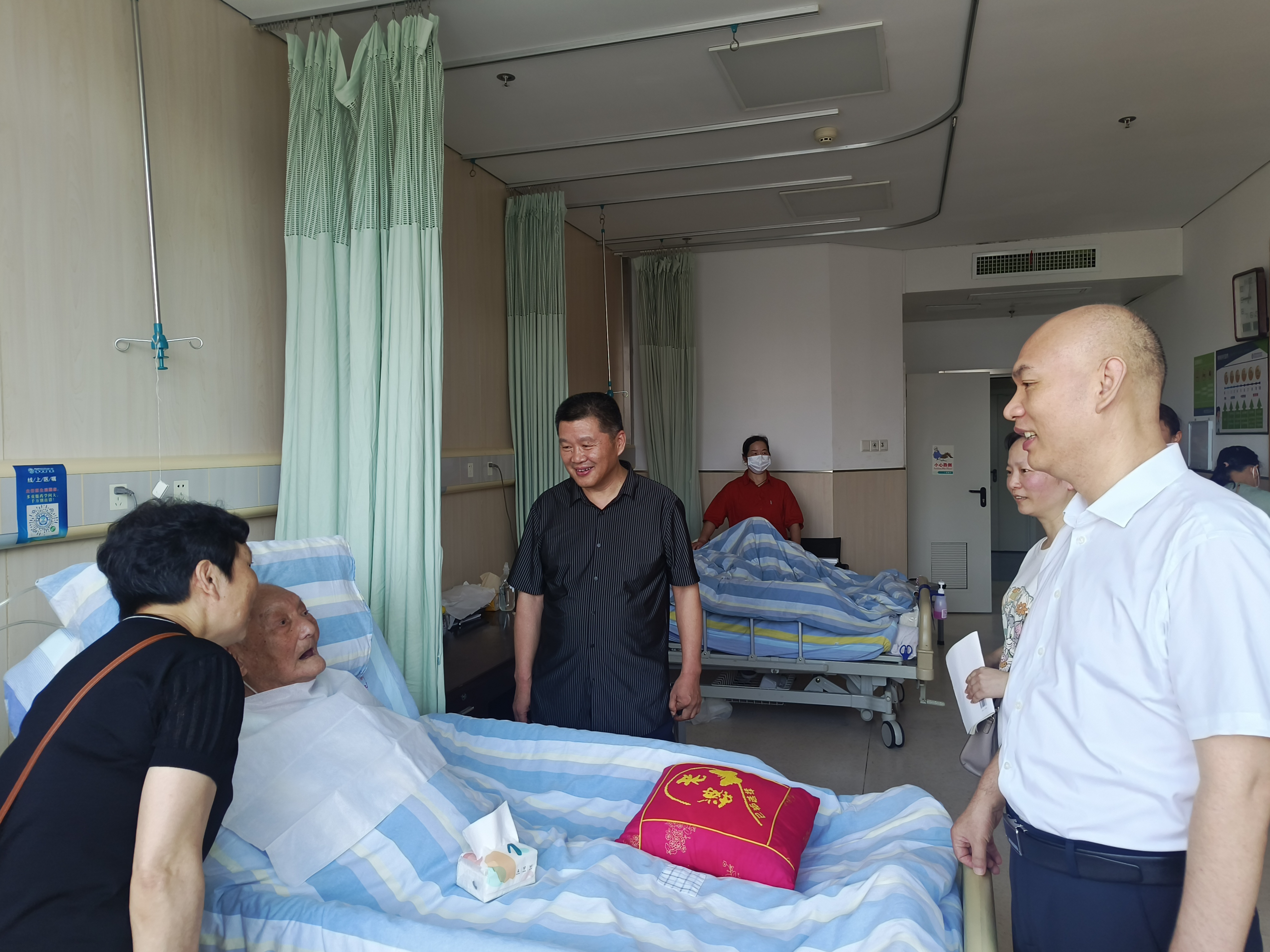 在慶祝建黨103周年之際,6月30日上午,建工股份副總經(jīng)理、建工二建黨委書記、董事長(zhǎng)朱忠明一行前往醫(yī)院看望慰問(wèn)離休老干部李輝同志,向這位曾經(jīng)為國(guó)家、社會(huì)和公司發(fā)展做出貢獻(xiàn)的前輩送上誠(chéng)摯的關(guān)懷和問(wèn)候。