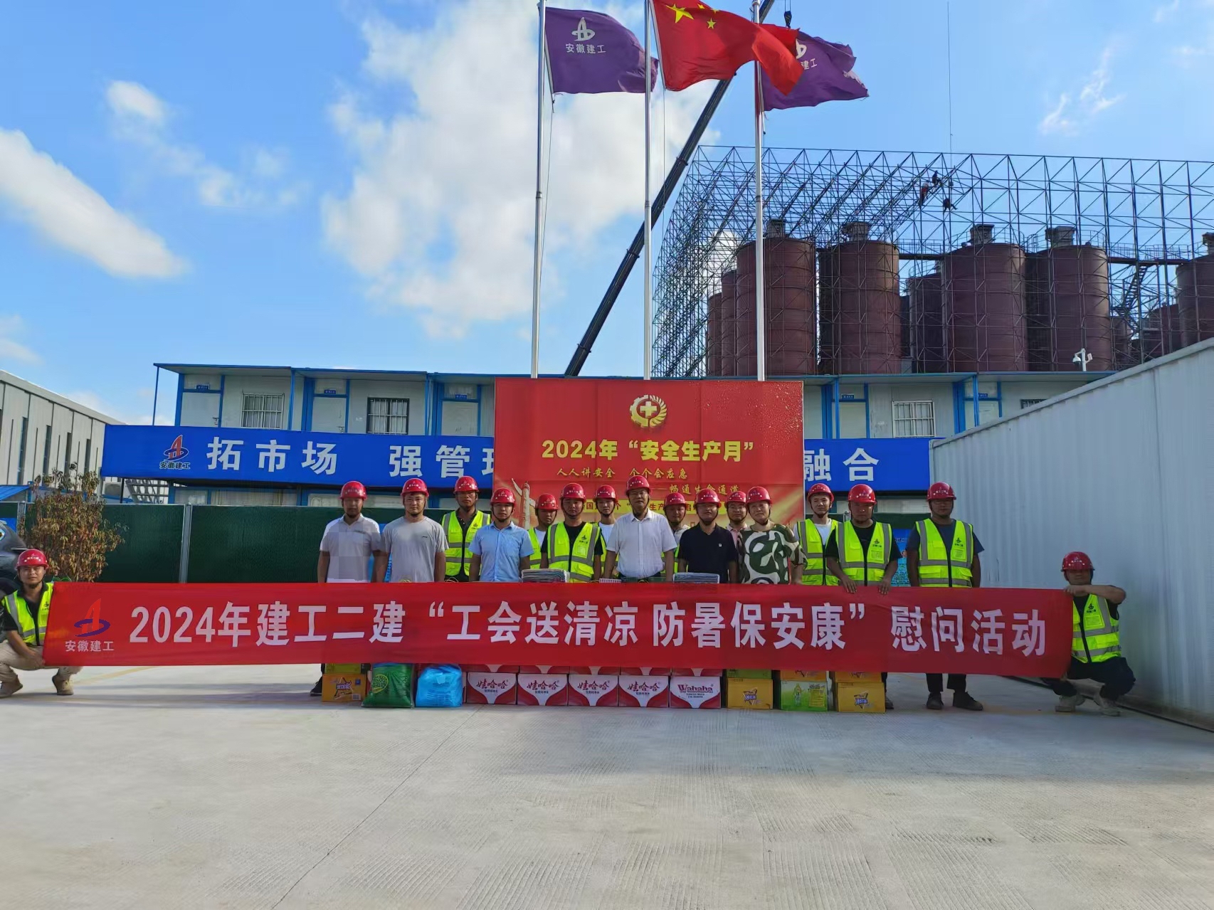 驕陽(yáng)似火,酷暑難耐,為做好職工防暑降溫工作,有效防控高溫中暑事件和安全生產(chǎn)事故的發(fā)生,切實(shí)維護(hù)廣大職工的勞動(dòng)安全和健康,7月25日,建工二建黨委副書記、總經(jīng)理陶良敬赴安徽建工(蕪湖)新材料智能智造產(chǎn)業(yè)園項(xiàng)目開展送清涼慰問(wèn)活動(dòng)。建工建材蚌埠建材公司副經(jīng)理邵亞飛參加慰問(wèn)活動(dòng)。