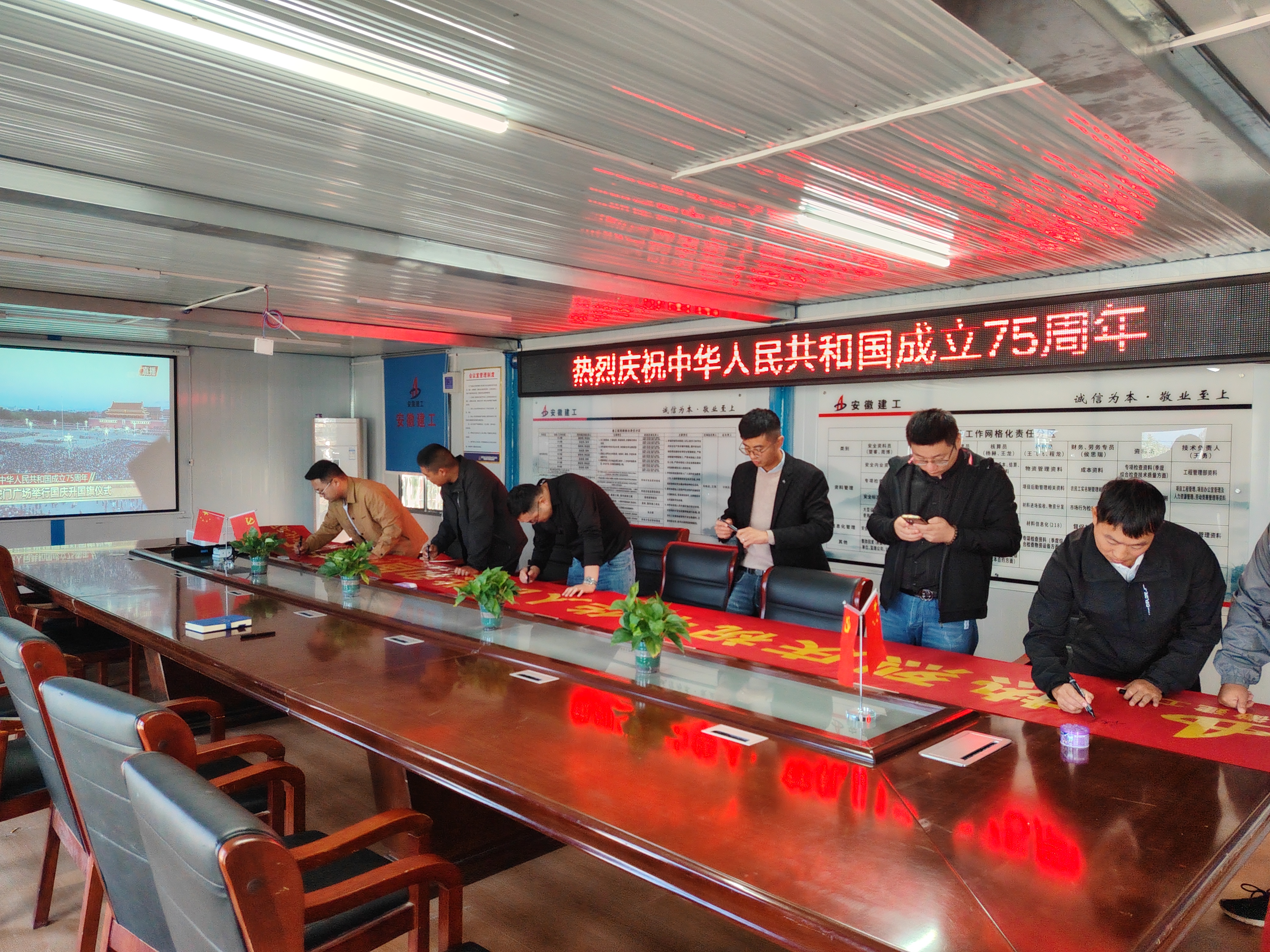 為慶祝中華人民共和國(guó)成立75周年,引導(dǎo)項(xiàng)目職工弘揚(yáng)愛國(guó)主義精神,近日,宿徐園區(qū)城鎮(zhèn)一體化AB地塊工程項(xiàng)目部組織開展了“七十五載逢盛世,同心共筑譜華章”系列迎國(guó)慶活動(dòng),組織職工集中觀看天安門升國(guó)旗儀式,在慶祝橫幅上為祖國(guó)寫下祝福語(yǔ),開展“我與國(guó)旗合個(gè)影”活動(dòng)。