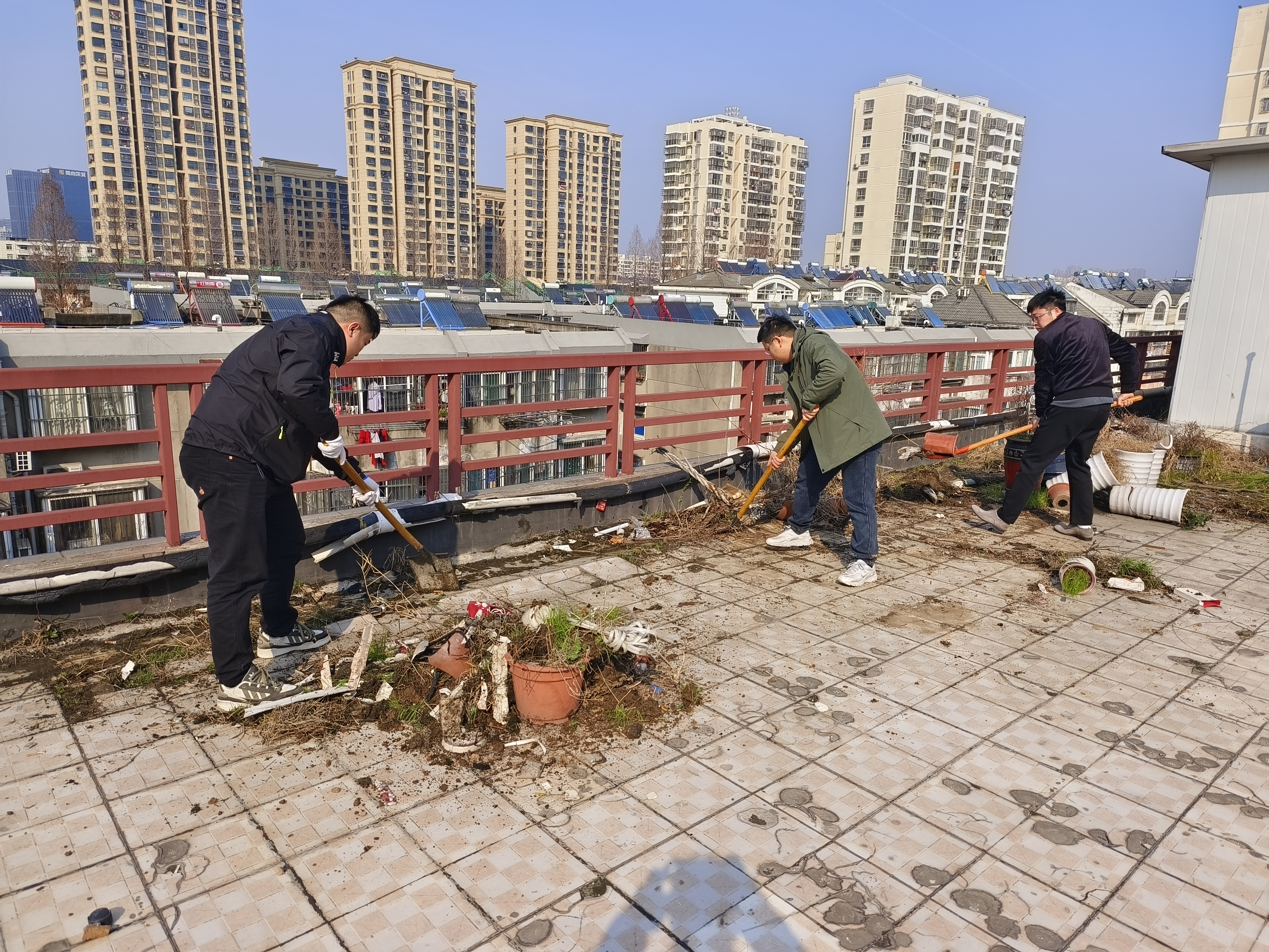 活動當天,現(xiàn)場氛圍熱烈而有序,職工們對辦公樓及露臺區(qū)域的各個角落進行了全方位的清理。大家分工明確,協(xié)作默契,確保不遺漏任何一個衛(wèi)生死角。經(jīng)過大家的共同努力,辦公區(qū)域及露臺的環(huán)境煥然一新。
