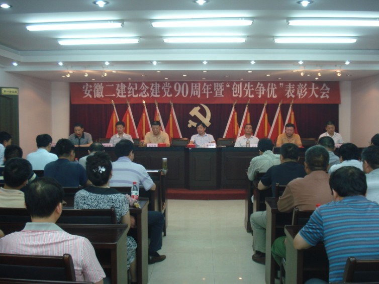 6月29日下午,安徽二建公司隆重召開慶祝建黨90周年暨“創(chuàng)先爭優(yōu)”表彰大會。公司黨委書記朱治淮在會上作重要講話,黨委委員、工會主席李林主持會議,公司黨政領(lǐng)導(dǎo)、機(jī)關(guān)全體黨員、各基層黨員代表、受到公司黨委表彰的部分先進(jìn)集體、先進(jìn)個(gè)人代表共計(jì)70余人參加會議。