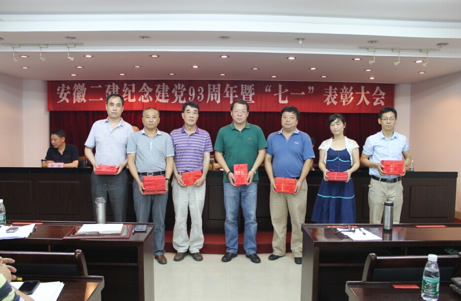 7月1日下午,安徽二建黨委在三樓會(huì)議室召開了紀(jì)念建黨93周年暨“七一”表彰會(huì)。公司兩級(jí)領(lǐng)導(dǎo)班子成員、受表彰的先進(jìn)基層黨組織代表、優(yōu)秀共產(chǎn)黨員、優(yōu)秀共產(chǎn)黨員示范崗、部分在崗黨員和“我與安徽建工夢(mèng)”征文獲獎(jiǎng)代表共70多人參加會(huì)議。