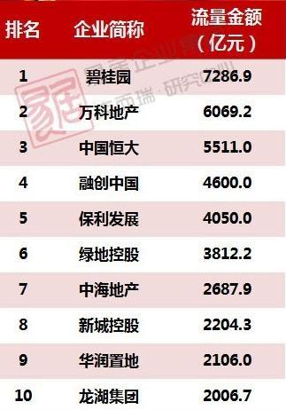 克爾瑞的數(shù)據(jù),碧桂園7287億元蟬聯(lián)第一,萬科6069億元重回行業(yè)第二,恒大5511億元的位居第三。