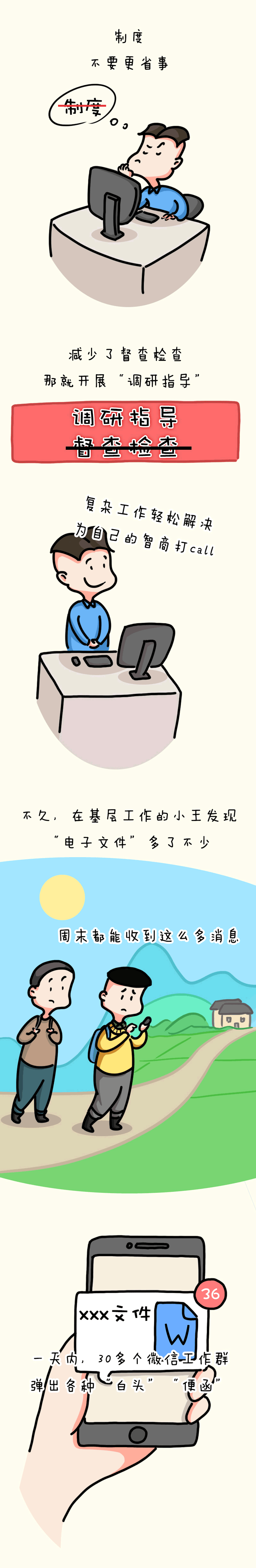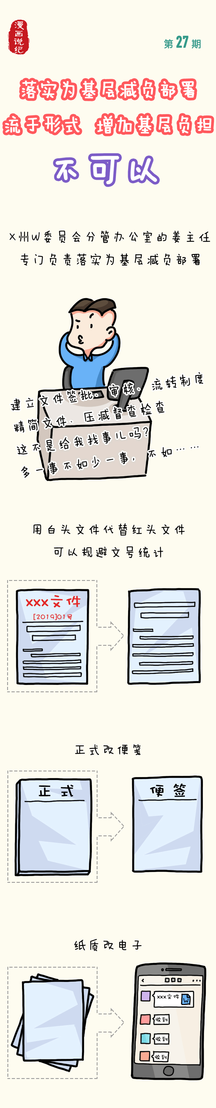漫畫(huà)說(shuō)紀(jì)丨落實(shí)為基層減負(fù)部署流于形式 增加基層負(fù)擔(dān) 不可以