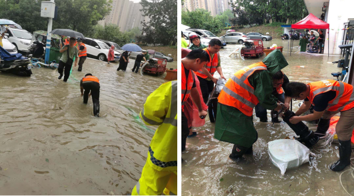 7月18日,合肥遭受77年一遇單日最大降雨。藍(lán)天公寓和大興鎮(zhèn)興泰苑出現(xiàn)內(nèi)澇,情況緊急,人民群眾生命財(cái)產(chǎn)安全遭受威脅,汛情就是戰(zhàn)斗令,二分公司接到指令,馬上組建30余人的抗洪突擊隊(duì),緊急調(diào)運(yùn)大功率水泵2臺,配電箱2個,80米電線電纜,300米水管等防汛物資,20分鐘極速趕到抗洪前線?,F(xiàn)場有的架設(shè)水泵、有的鋪設(shè)電纜、有的配合抽水排澇,分工明確、爭分奪秒。經(jīng)過數(shù)小時的緊急救援,至凌晨,災(zāi)情得到有效控制。奮戰(zhàn)了8個小時的志愿者們才撤出前線。