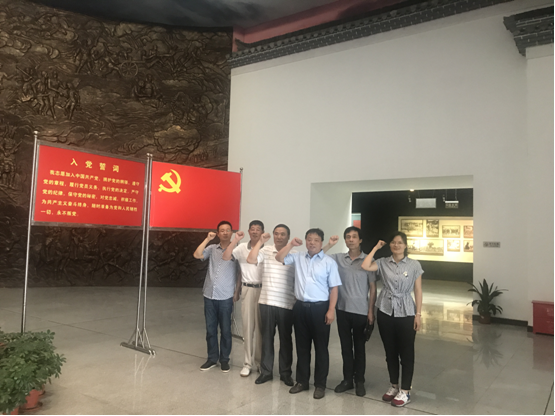 在接受教育過程中,全體黨員向皖南事變中英勇犧牲的烈士三鞠躬,向革命先烈表達(dá)敬仰之情;隨后,在支部書記的帶領(lǐng)下,全體黨員面向鮮紅的黨旗和先烈雕像,莊嚴(yán)地舉起右手,重溫入黨誓詞,用堅定的語調(diào),鏗鏘的心聲,表達(dá)共產(chǎn)黨員的崇高信仰和堅定信念。在陵園西側(cè)皖南事變史料陳列室中,大家認(rèn)真參觀學(xué)習(xí),回顧了新四軍革命抗日及解放戰(zhàn)爭時期可歌可泣的艱苦奮斗歷程,黨員同志深切感受到中國共產(chǎn)黨人百折不撓的革命精神和大無畏的犧牲精神,更加珍惜今天來之不易的幸福生活。