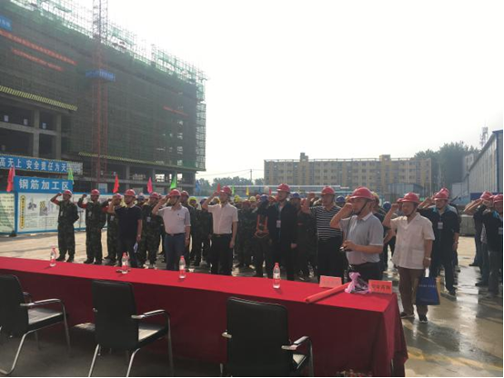 2017年6月8日上午,由安徽二建承建的太和發(fā)藝時尚文化園公共服務(wù)中心項目開展2017年“安全生產(chǎn)月”啟動儀式暨安全生產(chǎn)應(yīng)急救援、消防演練活動,正式拉開了以“全面落實企業(yè)安全生產(chǎn)主體責任”為主題的安全生產(chǎn)月活動序幕。公司副總經(jīng)理葉和永,安全管理部、工程管理部、保衛(wèi)部、太和PPP項目負責人、班組長、一線作業(yè)施工人員等百余人參加了此次活動。