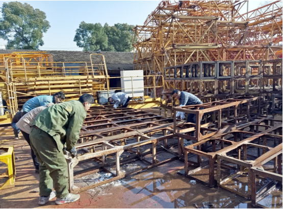機(jī)械分公司作為公司建筑施工的先鋒隊(duì),機(jī)械設(shè)備是根本。千里之堤潰于蟻穴,為了保證機(jī)械設(shè)備的安全運(yùn)轉(zhuǎn)和使用壽命。3月15日,機(jī)械分公司各部門員工開展了為期三天的大型機(jī)械設(shè)備除銹和噴漆勞動。