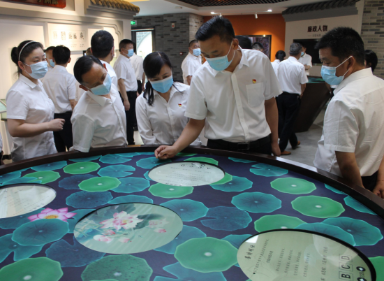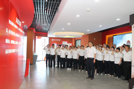 展廳內(nèi),通過講解員講解、觀看圖片展板和影像、互動體驗等方式,大家依次參觀了鑒史問廉、廉政故事、貪腐之害、時光隧道、廉潔豐碑、廉政成果、廉政文章、廉政寄語八大主展區(qū)。一個個詳實鮮活的腐敗典型案例,讓大家在視覺、聽覺上深切感受“知敬畏、存戒懼、守底線”的重要意義,讓黨員干部們的心靈經(jīng)受了一次洗禮,真正將參觀學(xué)習(xí)的成果轉(zhuǎn)化為抓好黨史學(xué)習(xí)教育和黨風廉政建設(shè)的強大動力。活動期間,公司黨委副書記、紀委書記仇多維帶領(lǐng)在場全體黨員同志重溫入黨誓詞。