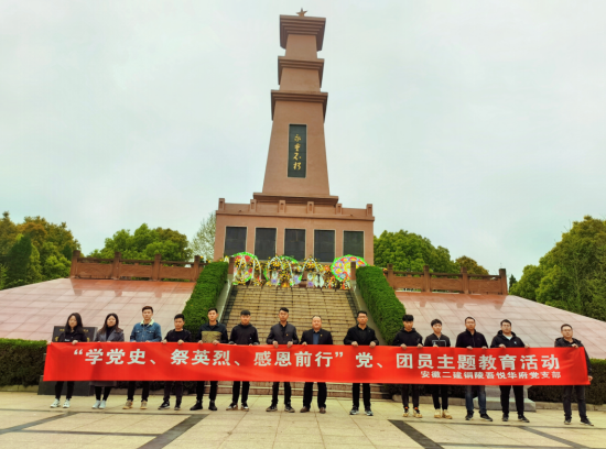 4月2日,三分公司銅陵吾悅?cè)A府項(xiàng)目黨支部開展“學(xué)黨史、祭英烈、感恩前行”主題活動。
