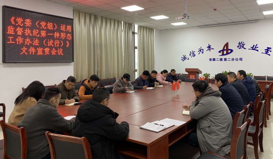 安徽二建公司組織學(xué)習(xí)《黨委(黨組)運用監(jiān)督執(zhí)紀(jì)第一種形態(tài)工作辦法(試行)》