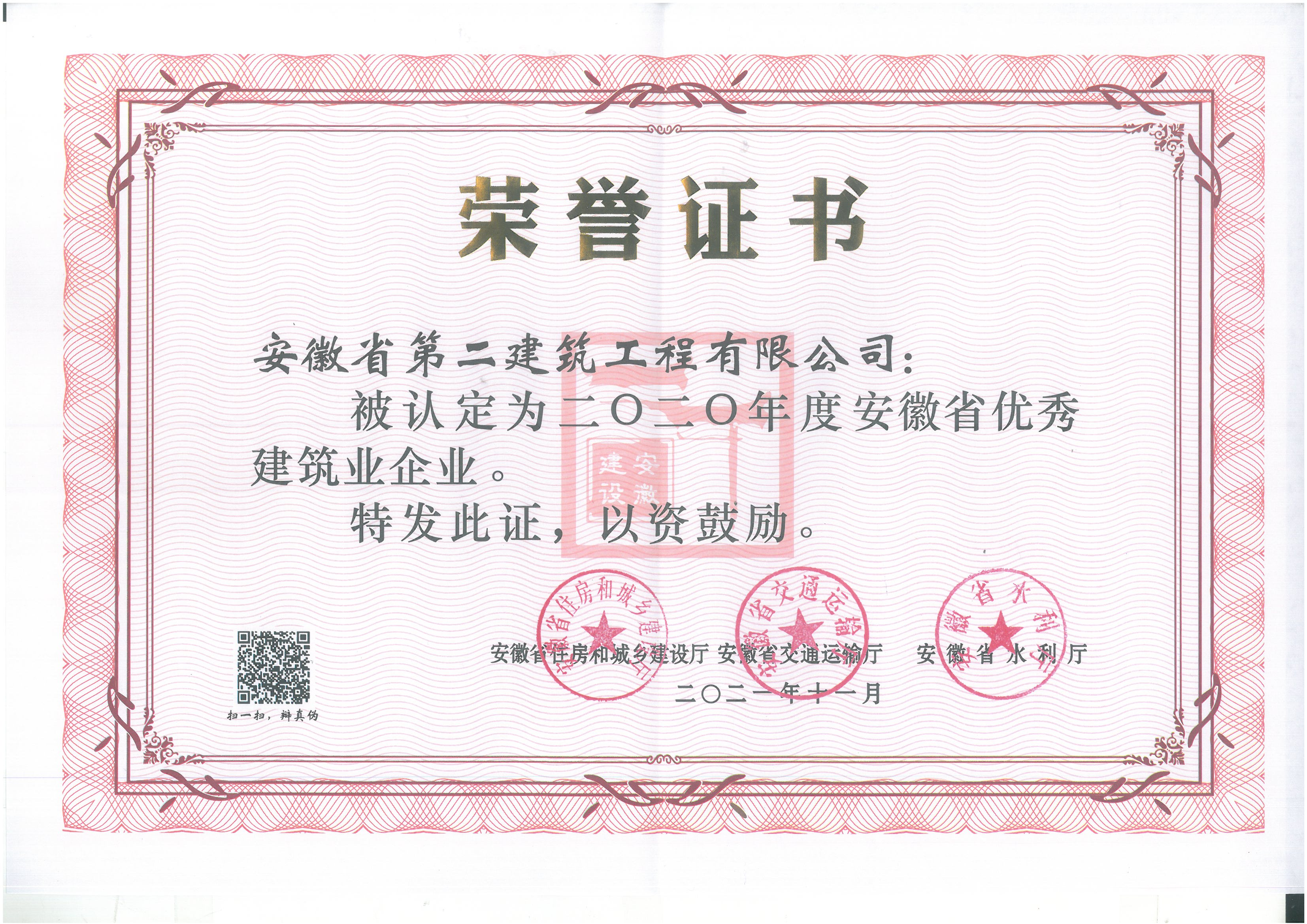 2020年度安徽省優(yōu)秀建筑業(yè)企業(yè)