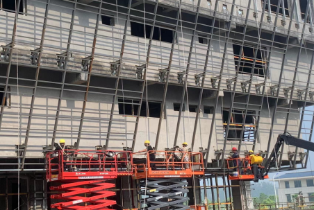 目前,宿州三館一院一中心項(xiàng)目已全面進(jìn)入到裝飾裝修階段,按照下半年生產(chǎn)目標(biāo),項(xiàng)目部針對室內(nèi)裝修、室外鋪裝、幕墻安裝、鋼網(wǎng)架等工作內(nèi)容細(xì)化階段目標(biāo)和責(zé)任人,每晚組織技術(shù)科、施工科與裝修班組、安裝班組召開生產(chǎn)進(jìn)度分析會,對當(dāng)天問題及時溝通和解決,保證不耽誤生產(chǎn)進(jìn)度。